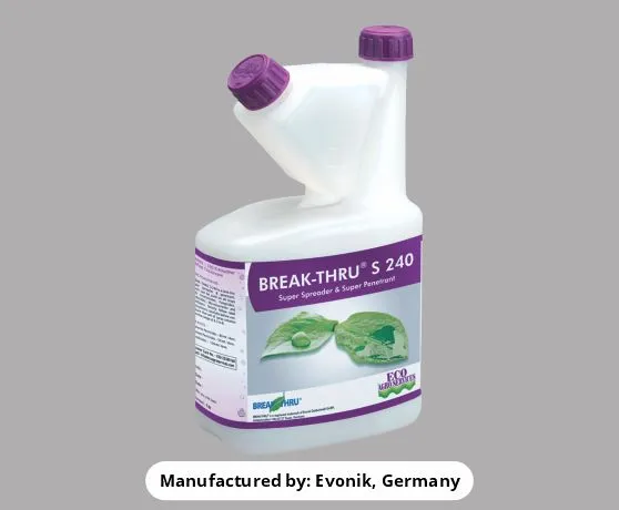 - BREAK-THRU S240 permits the reduction of spray volumes up to 30%, which Saves time, money, and environmental resources.